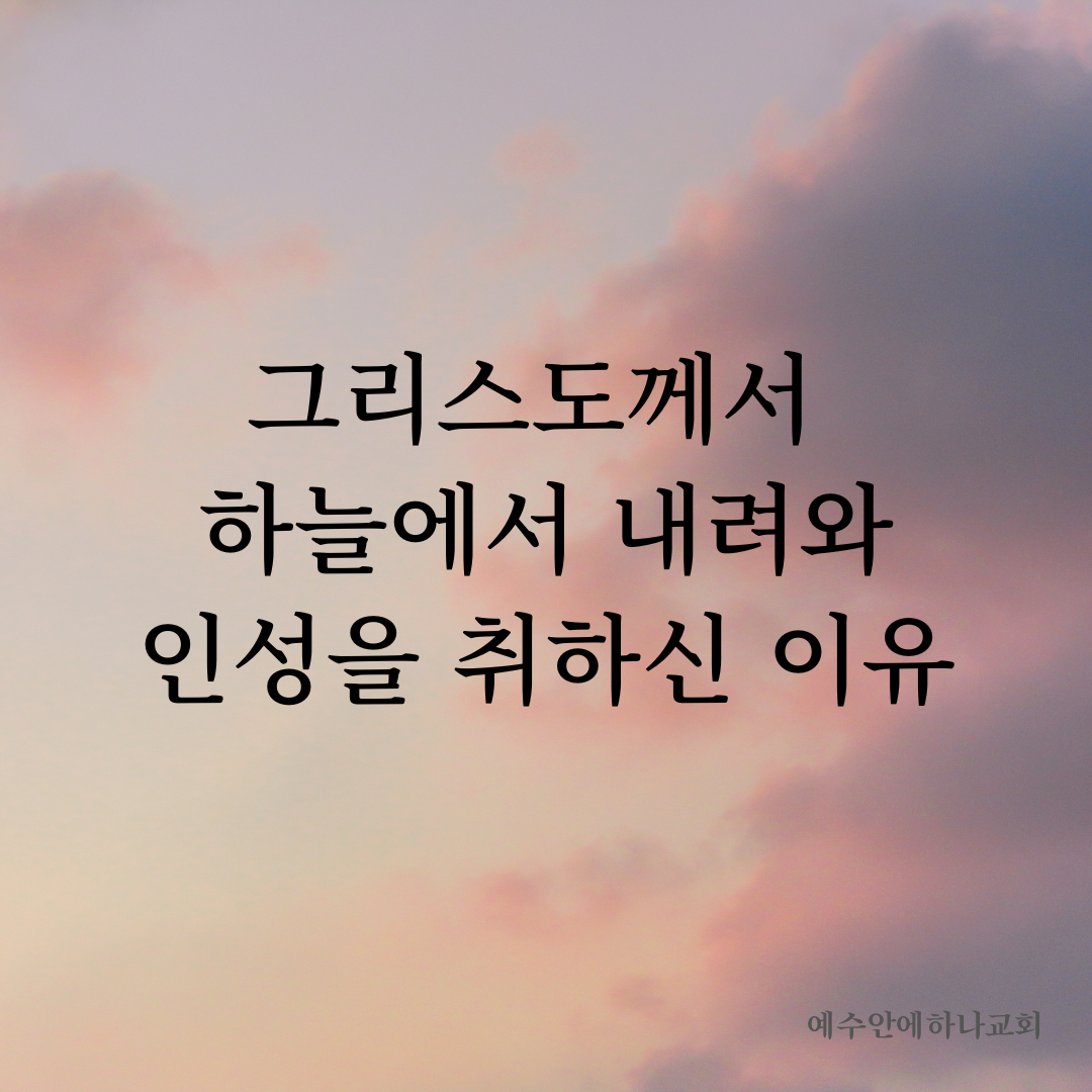 옛적 길 그리스도께서 하늘에서 내려와 인성을 취하신 이유 by 깨우는자동훈 2022. 12. 3. 공유하기 게시글 관리 바른신앙 관련글 행함이 없는 이유 예수님의 겸손하심 말씀묵상의 중요성 빛이신 그리스도 댓글