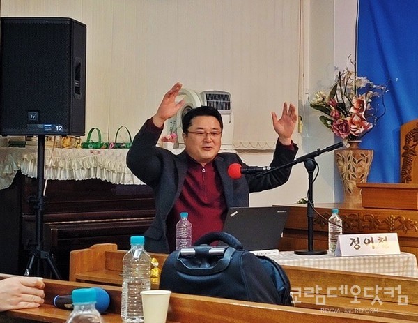 상호토론 중인 정이철 목사 ⓒ김성욱