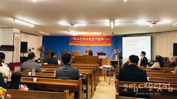 22일, 회심준비론 찬반 토론회가 진행중인 한돌교회 예배당 ⓒ신요한