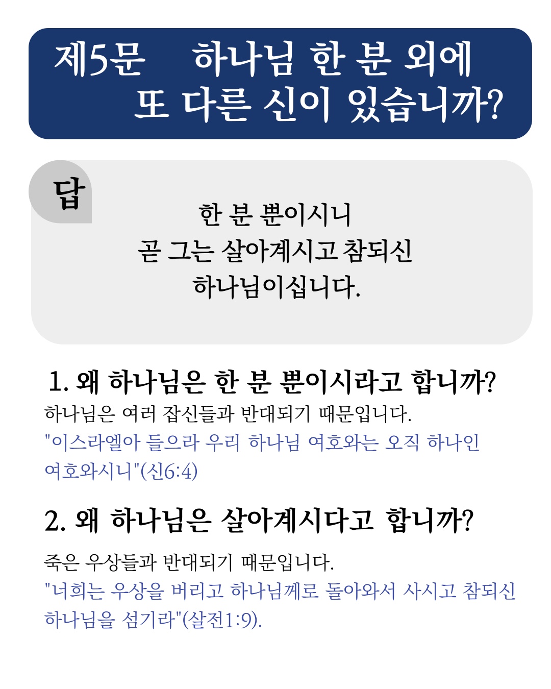 옛적 길 웨스트민스터 소요리문답 5문 by 깨우는자동훈 2023. 11. 18. 공유하기 게시글 관리 바른신앙 관련글 하나님께서는 작정을 어떻게 실행하실까 말씀을 소홀히 여기는 이들에게 하나님을 영과 진리로 예배하는 방법 보혜사 성령님에 대해 알아야 할 3가지 댓글