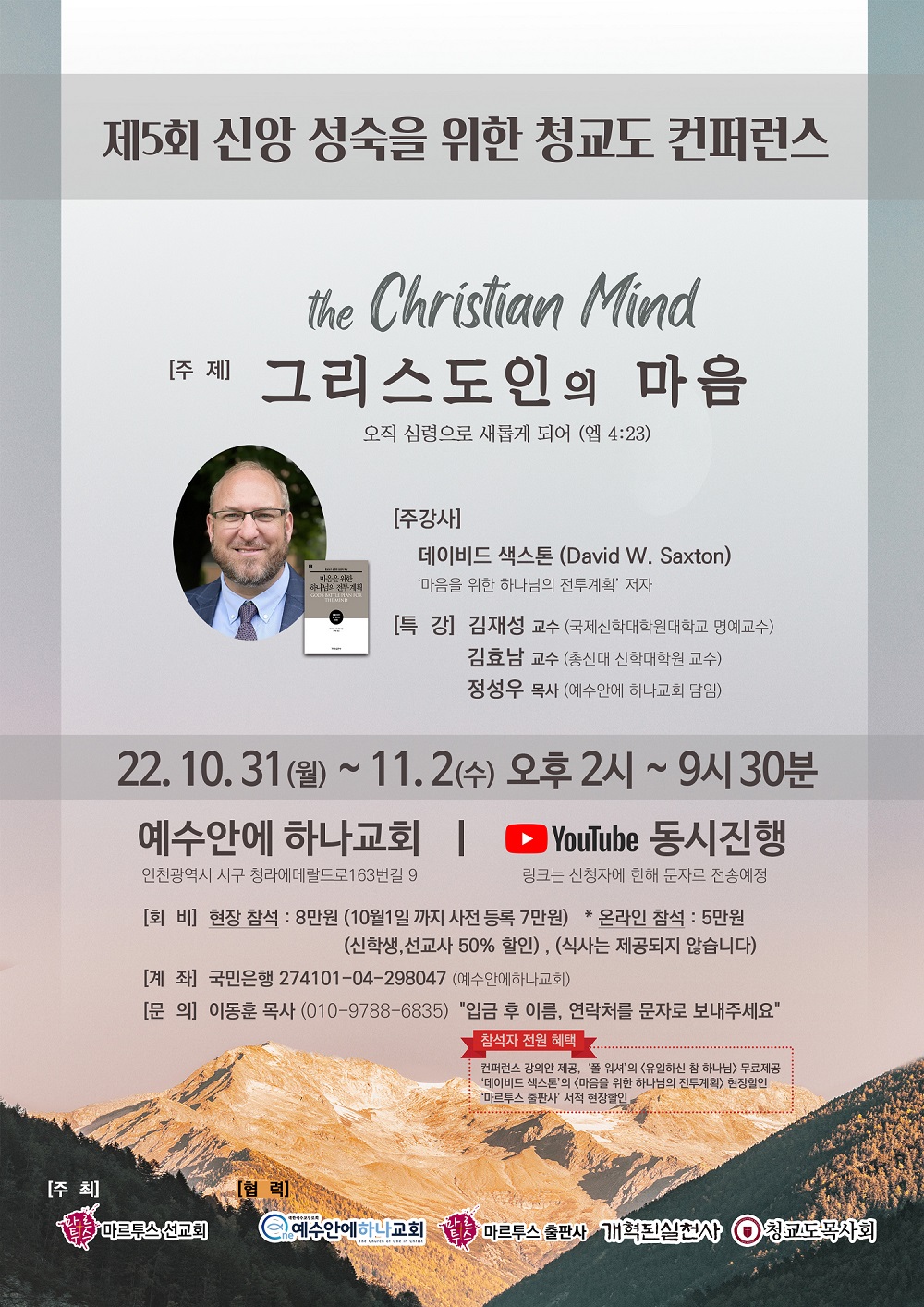 *혜택: 참석자 전원에게 강의안, 폴 워셔 "유일하신 참 하나님" 무료 제공,
