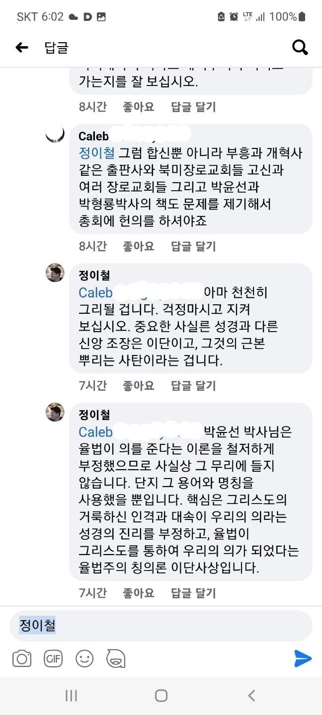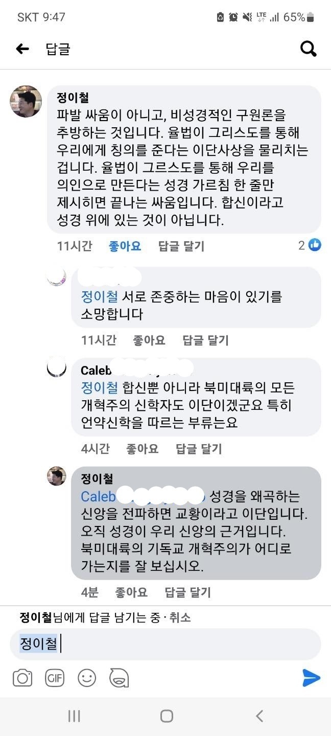 다음은 <신학 공부 다시 시켜야 할 예장 합신 목사들>에서 ‘이단들처럼 확증편향에 사로잡힌 자기 주제’를 모르는 한심한 놈이 언급한 “어떤 분”, 예장 합신 목사님 담벼락에서 찍은 사진이다.